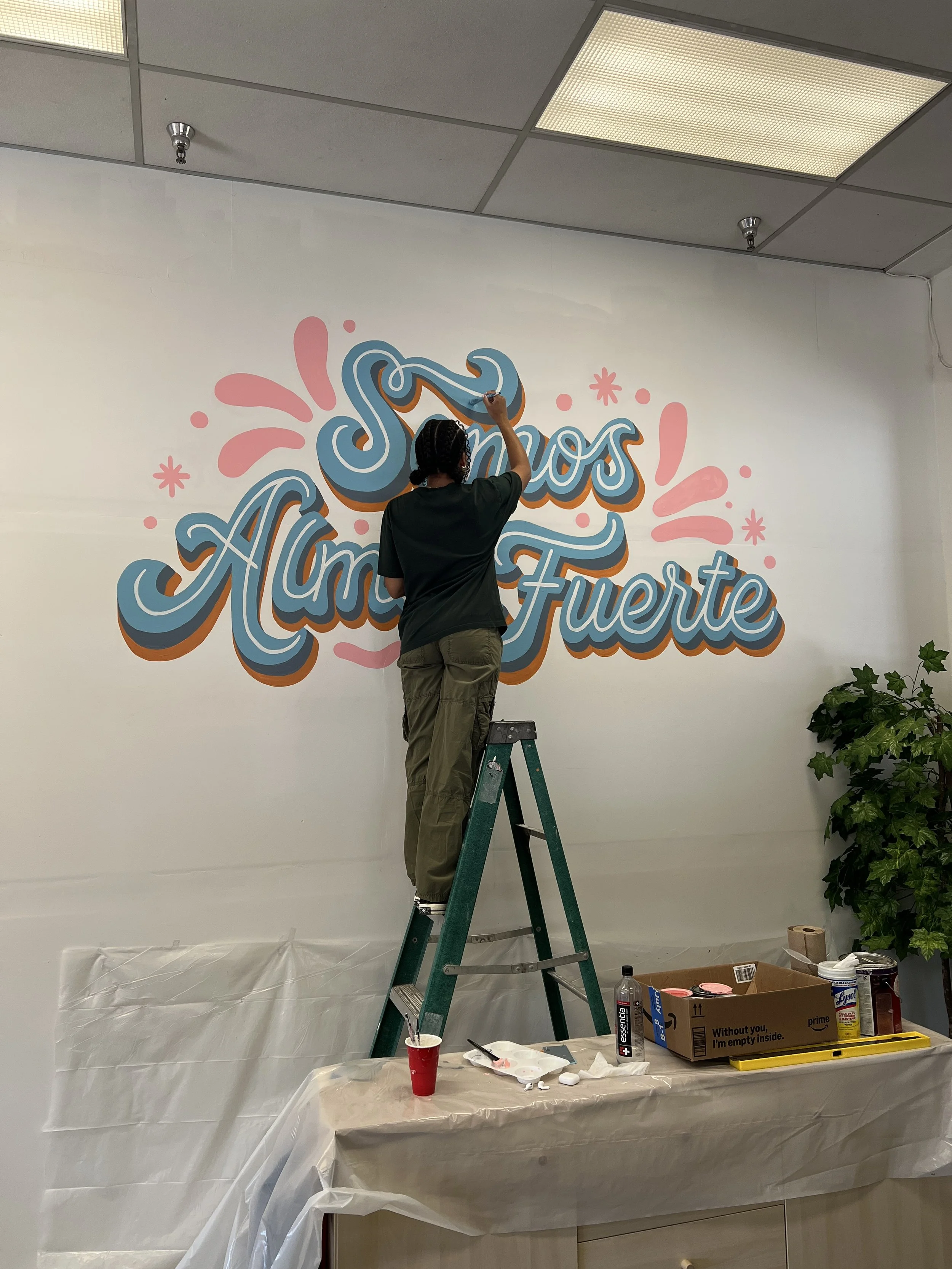 In 2021, I partnered with Alma Fuerte to design their brand identity, creating a visual system that represents their values and vision. Soon after, I was invited to paint my first mural on campus, which led to an ongoing relationship with the school.