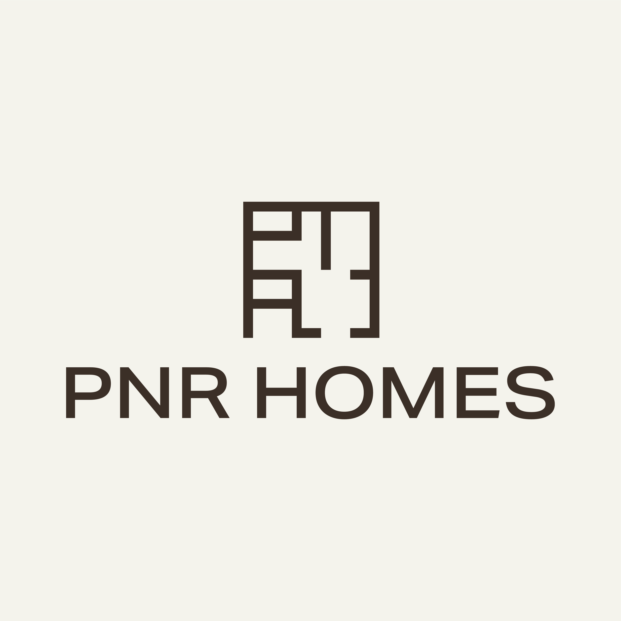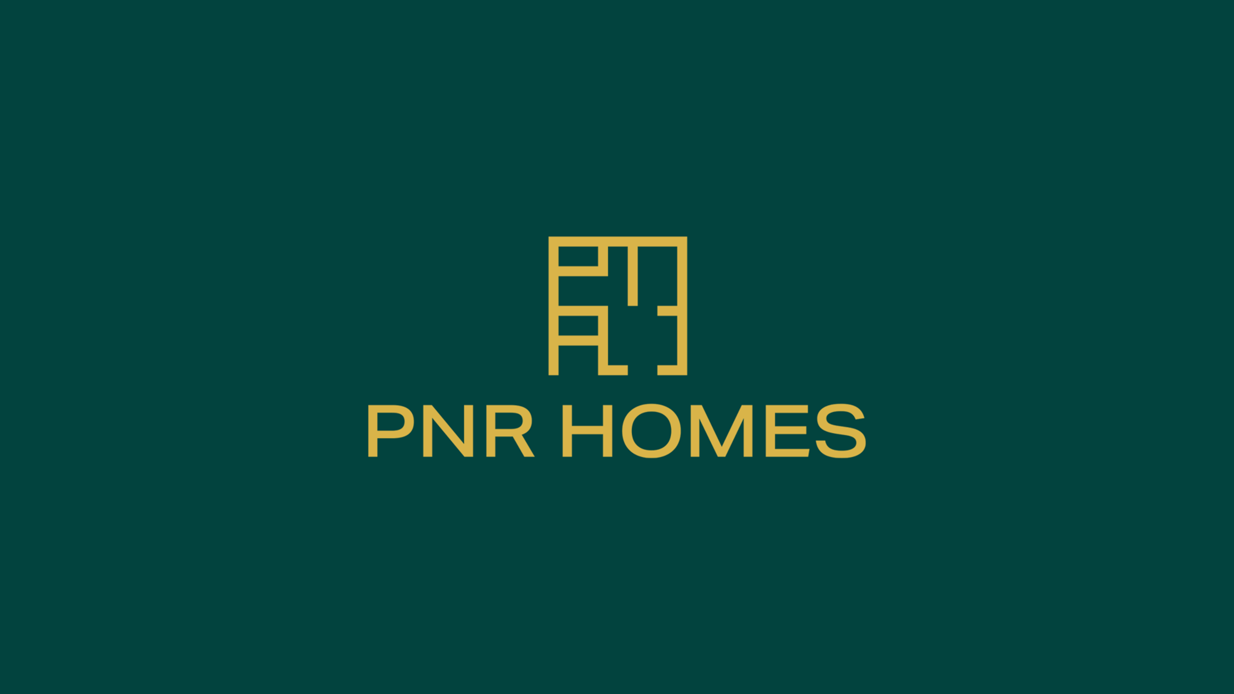 A system of geometric logo marks was designed to establish a modern visual identity for PNR Homes. The design features shapes inspired by architectural floor plans, paired with a clean, modern sans-serif typeface.
